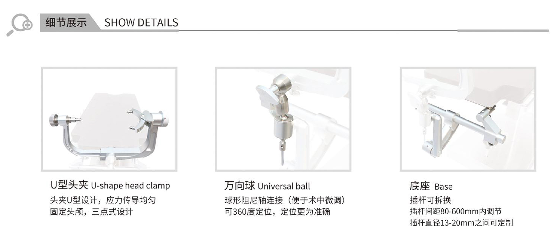 4、人性化設(shè)計(jì):頭架設(shè)計(jì)充分考慮患者舒適度,降低對(duì)患者的壓迫感,同時(shí)方便醫(yī)生在手術(shù)過(guò)程中的操作。